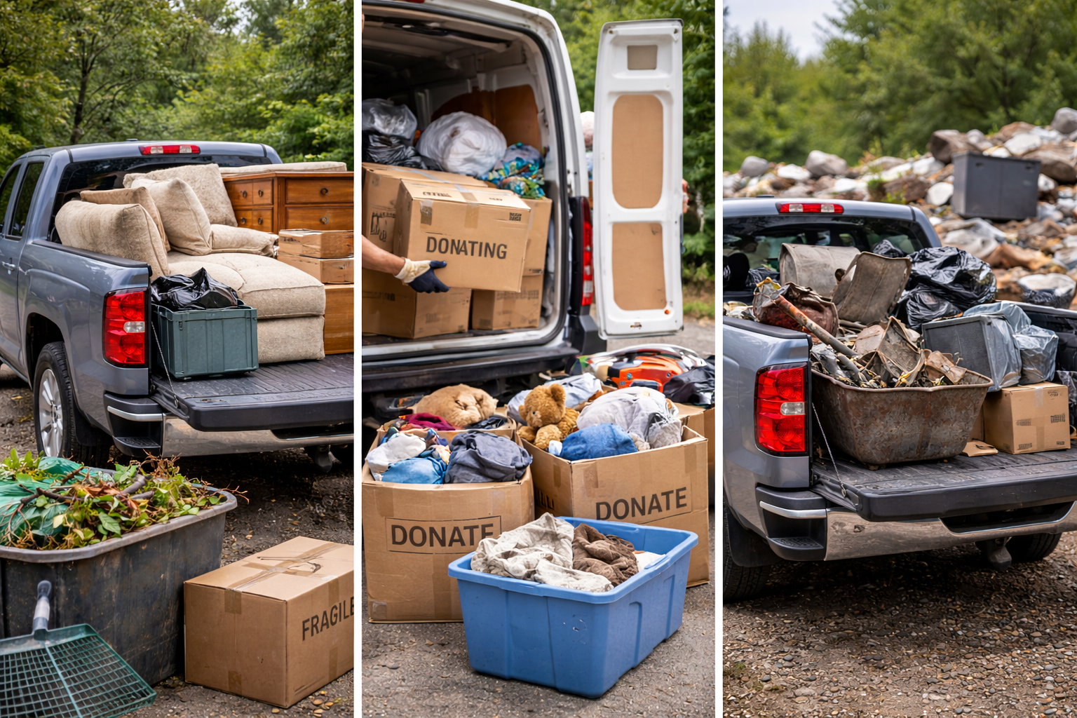 We prioritize responsible disposal and recycling to reduce landfill waste. Materials such as cardboard, metal, plastics, and select paint and chemicals are recycled whenever possible, and usable furniture is donated to local organizations, including Goodwill, Salvation Army, and Make it Home Foundation.